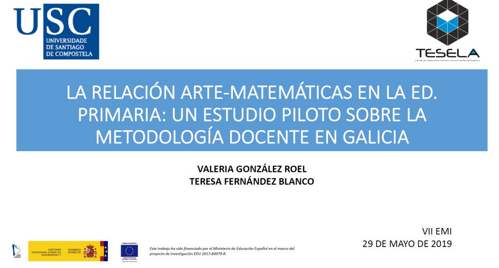 Os membros de EAMARE STEAM presentaron un estudo sobre ‘A relación arte-matemática na educación primaria: un estudo piloto sobre a metodoloxía de ensino en Galicia’ no VII EMI (Encontro Da Mocidade Investigadora). A reunión celebrouse na Universidade de Santiago de Compostela os días 27-29 de maio de 2019.